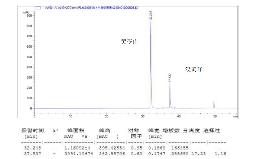 在進(jìn)行這些檢測(cè)時(shí),需要使用特定的色譜條件,如色譜柱、流動(dòng)相、流速、檢測(cè)器和柱溫等。同時(shí),還需要制備對(duì)照品溶液,以便與供試品進(jìn)行比較和定量。 App ID: FLM-F240001 小柴胡顆粒中黃芩提取物的檢測(cè) 方法:小柴胡顆粒中黃芩提取物檢查項(xiàng)補(bǔ)充檢驗(yàn)方法(BJY 202304) 色譜柱:FastCore SuperC18 2.7μ 100*4.6mm 貨號(hào):FSD-27SC18-EONU 流速:0.6 mL/min 柱溫:25℃ 檢測(cè):UV 270nm 流動(dòng)相:A:甲醇 B:0.5%甲酸 方法說明:結(jié)果顯示,實(shí)測(cè)理論板數(shù)按黃芩苷峰計(jì)算 166455,柱效遠(yuǎn)高于的藥典要求的 5000,滿足檢測(cè)要 求。色譜柱推薦 FastCore SuperC18 2.6μ 100*4.6mm(貨號(hào):FSD-26SC18-EONU )或 FastCore SuperC18 2.7μ 100*4.6mm(貨號(hào):FSD-27SC18-EONU )。