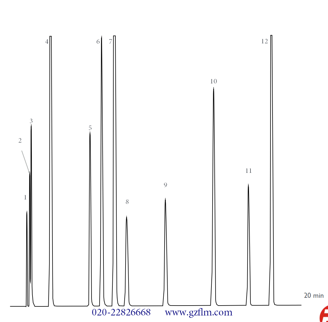 消費(fèi)者在購(gòu)買食品時(shí)也應(yīng)注意查看食品配料表和營(yíng)養(yǎng)成分表等信息,了解食品中是否添加了二氧化硫或其鹽類作為食品添加劑,并合理控制攝入量。同時(shí),對(duì)于顏色過白、過于鮮亮或有刺激性氣味的食品應(yīng)保持警惕,避免購(gòu)買和食用可能過量添加二氧化硫的食品。 Sulfur compounds Column: FBX-VOC 2 - 0.53mm, 5.00μm, 30m Conditions: Oven Program: 30°C, 5°C/min, 130°C Carrier Gas: Hydrogen, 3.8mL/min Injector: 200°C Detector: FPD, 200°C Peak identification 1.Hydrogen sulfide 2.Carbonyl sulfide 3.Sulfur dioxide 4.Methanethiol 5.Methyl sulfide 6.Ethanethiol 7.Carbon disulfide 8.2-propanethiol 9.1-propanethiol 10.Thiophene 11.1-butanethiol 12.Methyl disulfide ![]() |