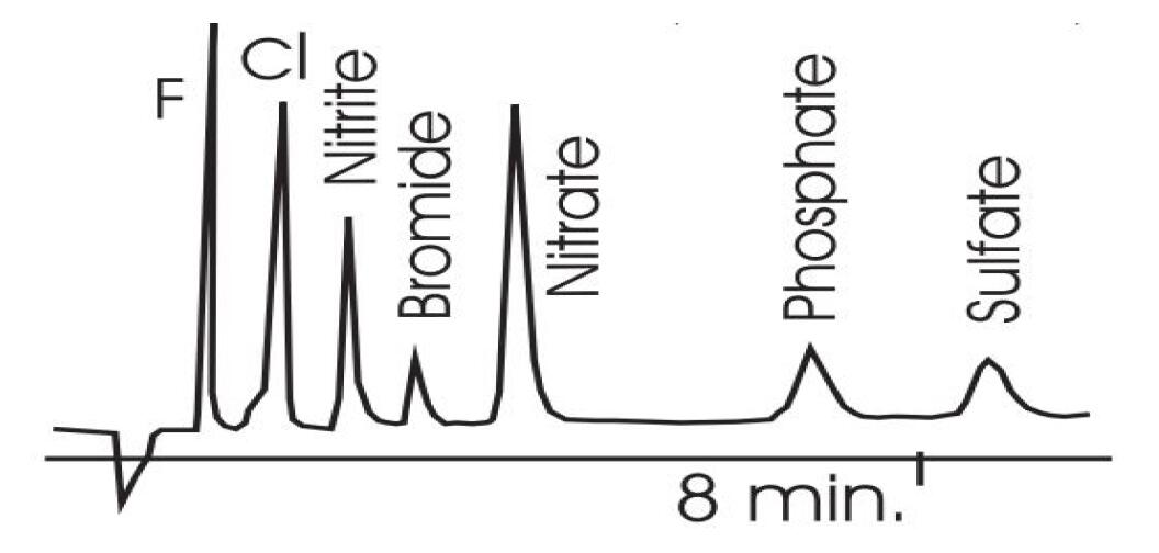 1.氟離子;2.氯離子;3.亞硝酸根離子;4.溴離子;5.硝酸根離子;6.磷酸根離子;7.硫酸根離子